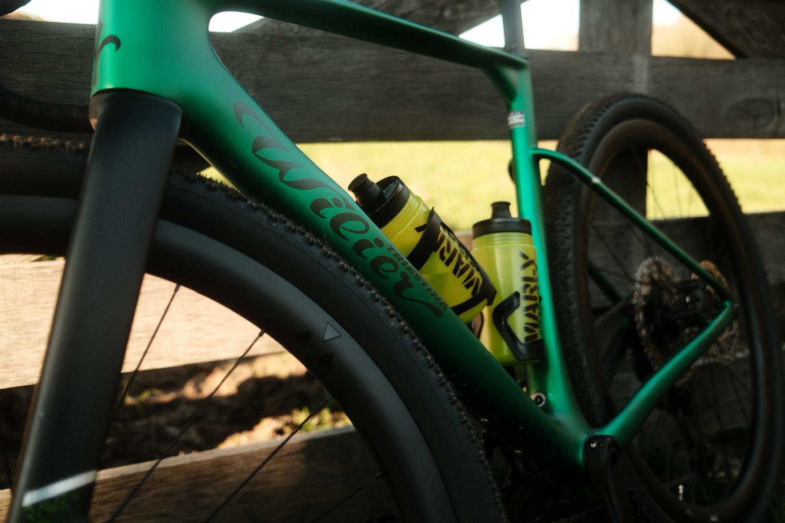 Een van de opvallendste kenmerken van de Wilier RAVE SLR is het extreem lichte carbon frame. Het frame is gemaakt van hoogwaardig HUS-Mod carbon, een materiaal dat bekend staat om zijn sterke maar lichte eigenschappen. Dankzij deze geavanceerde carbonconstructie weegt het frame slechts rond de 900 gram. Dat lage gewicht zorgt ervoor dat de fiets snel accelereert en efficiënt klimt, wat vooral merkbaar is op heuvelachtig terrein. Tegelijk blijft het frame zeer stijf, waardoor de kracht van elke trap direct wordt omgezet in snelheid. Hierdoor voelt de RAVE SLR levendig en responsief aan, ideaal voor rijders die prestaties en snelheid zoeken tijdens lange gravelritten.